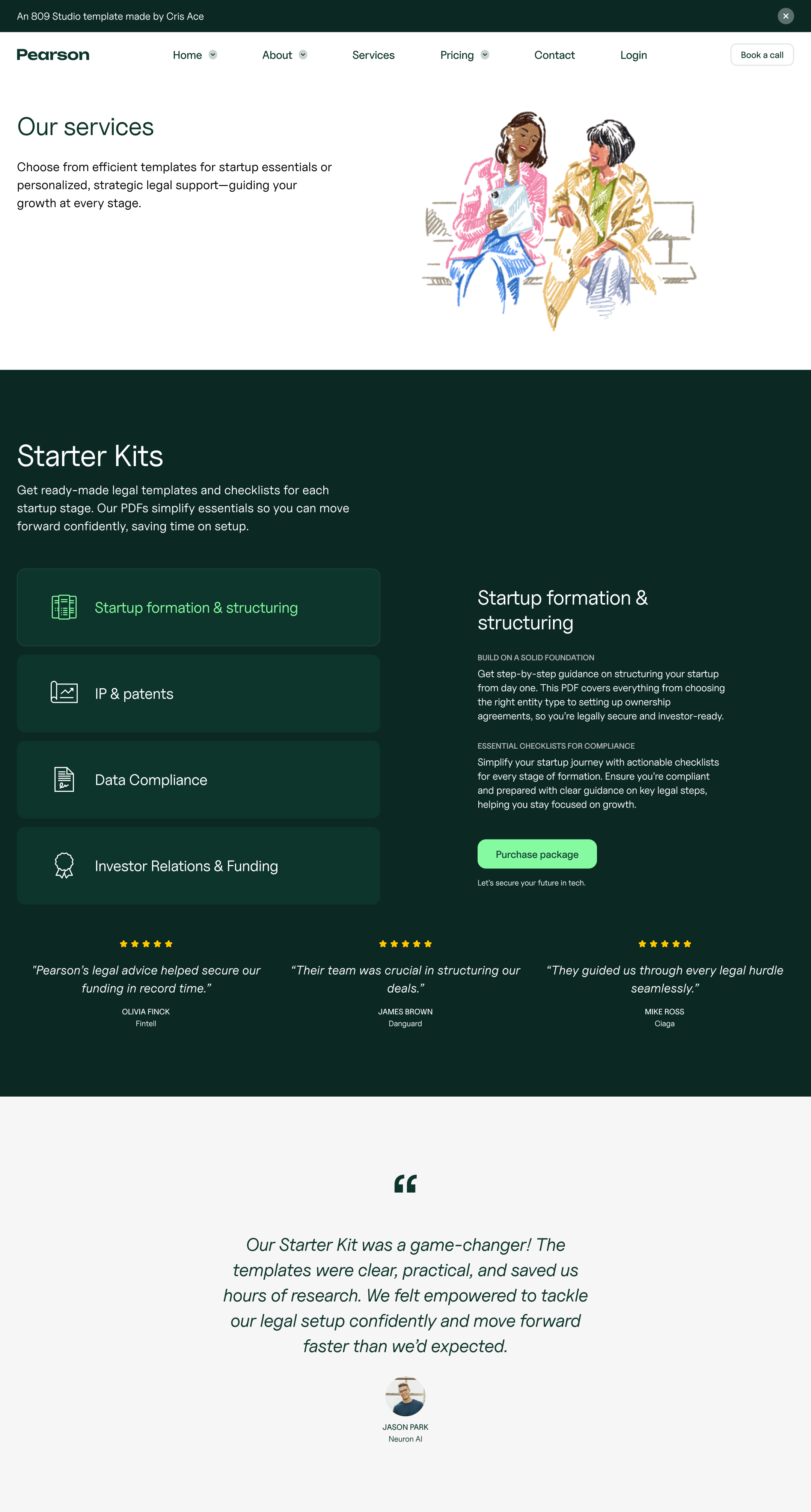 With Pearson Webflow template you also have access to the Figma File. Simply send a request with your webflow receipt.